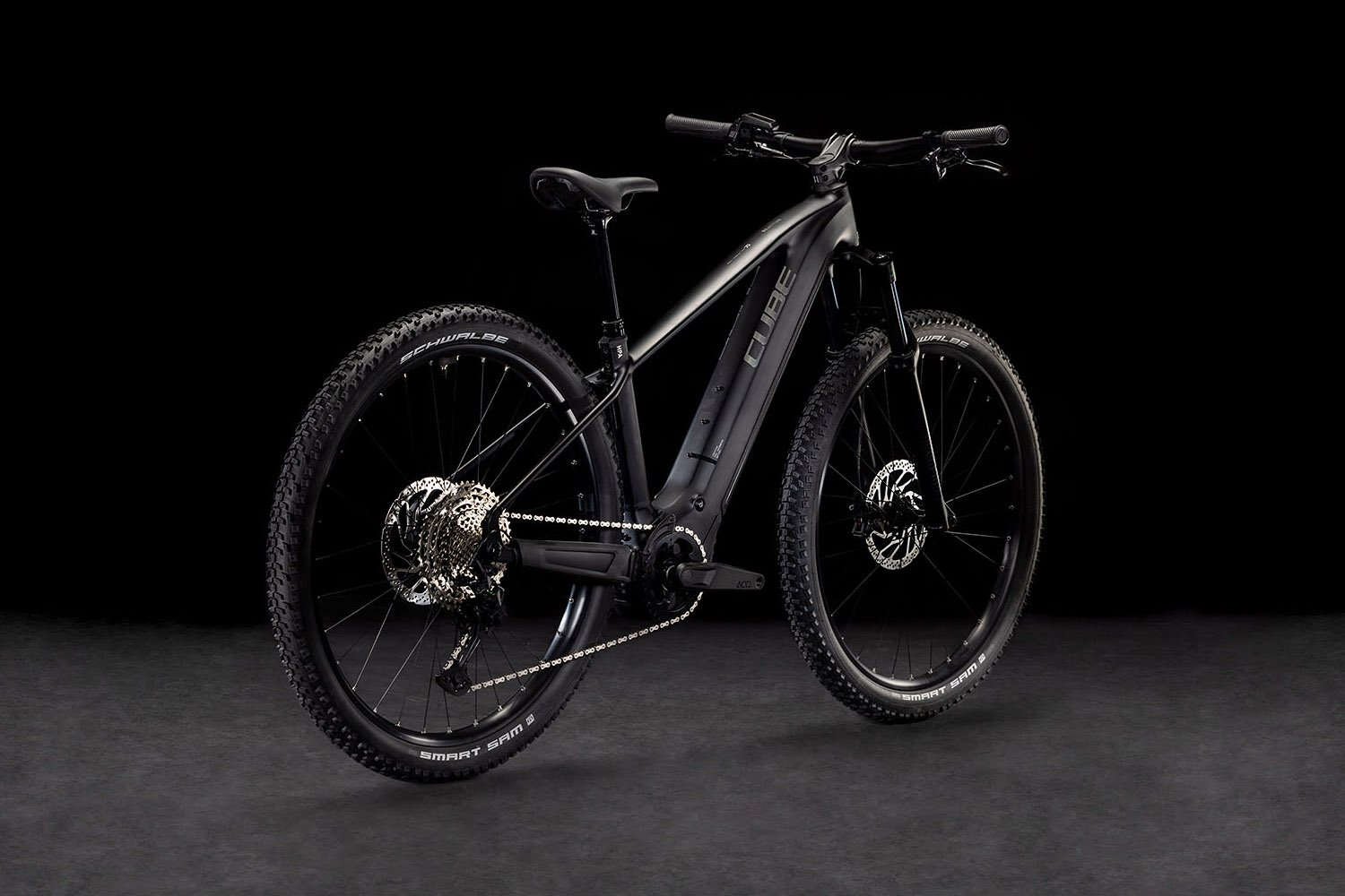 Avec sa construction robuste et sa batterie PowerTube de grande capacité, le Cube Reaction Hybrid Race maîtrise tous les itinéraires avec brio. De plus, ce e-hardtail est PowerMore-ready, ce qui signifie que 250 Wh de puissance supplémentaire peuvent l’accompagner en cas de besoin pour encore plus d’autonomie. Son moteur Bosch CX avec Smart System est responsable de l’assistance énergique en marche avant. Cette puissance est transmise au sol par une transmission Shimano XT 12 vitesses, qui dispose de la bonne vitesse pour chaque situation.