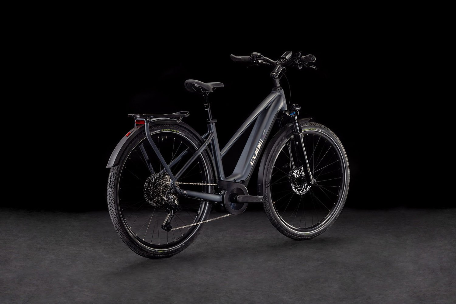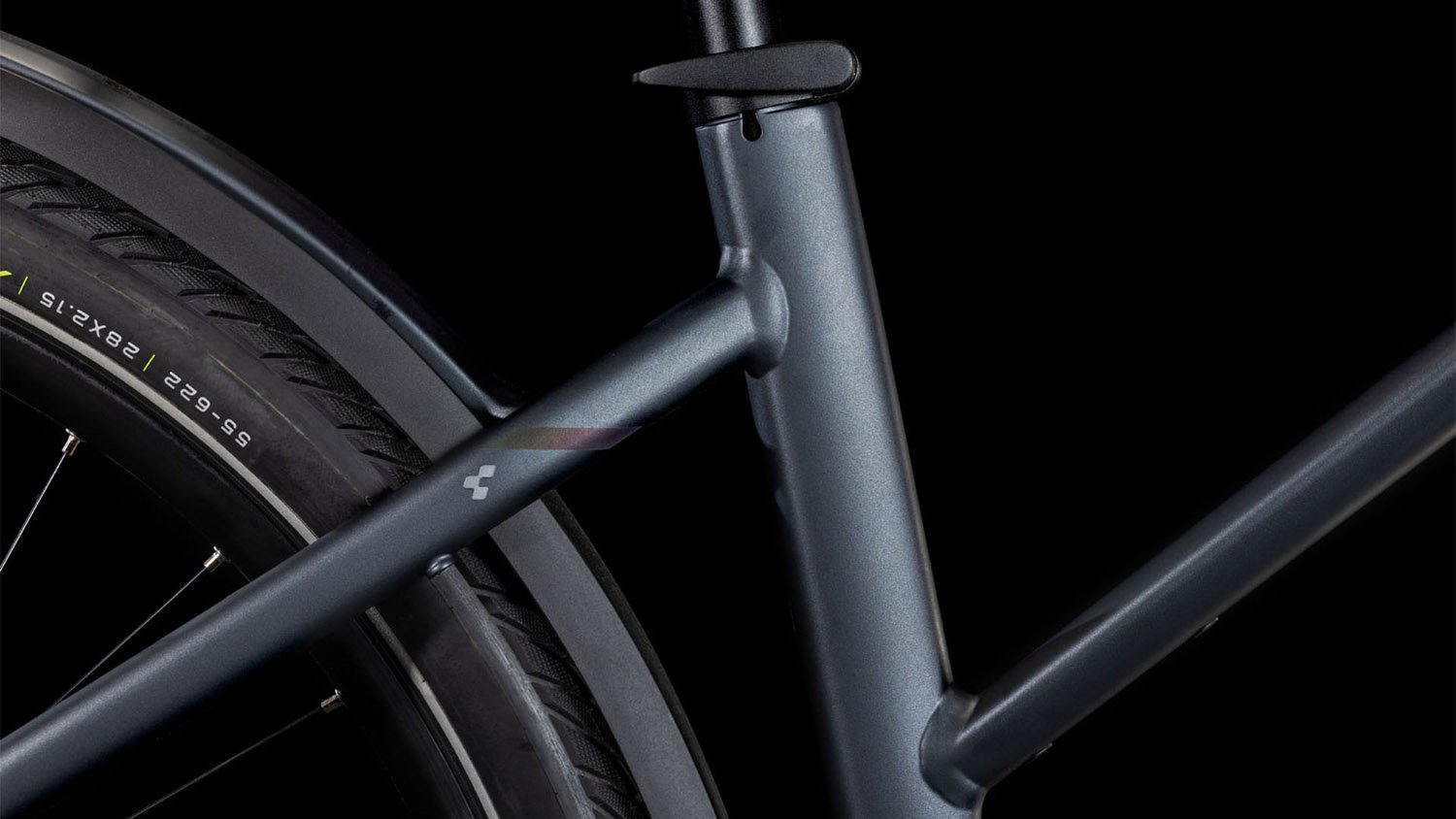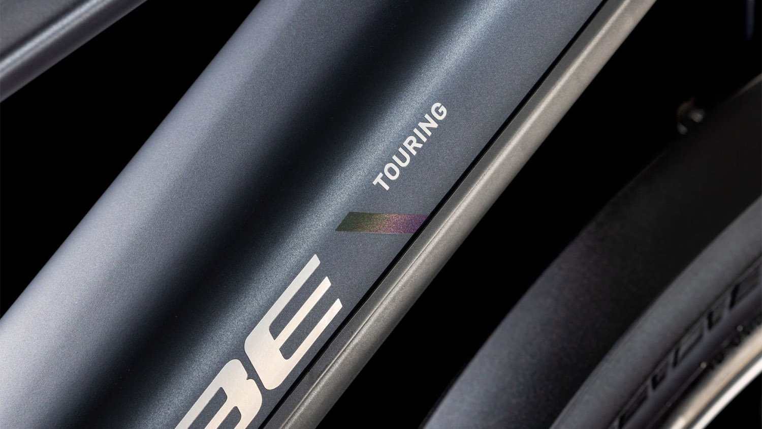 Le cadre trapézoïdal du Touring Hybrid impressionne d’abord par son look très élégant, mais un examen plus approfondi révèle immédiatement sa haute qualité technique : le puissant entraînement Bosch Performance avec Smart System et la batterie PowerTube de 625 Wh ont été magnifiquement intégrés dans le design. Le solide porte-bagages IC 3.0 intégré est tout aussi esthétique et astucieux, offrant de l’espace pour tous vos effets personnels. CUBE a également prévu des garde-boue pratiques, une béquille latérale et un système d’éclairage. La géométrie Efficient Comfort et la fourche suspendue avec un débattement de 63 mm apportent un confort supplémentaire – garantissant une conduite toujours confortable et des expériences de tourisme agréables, même sur les longs trajets !
