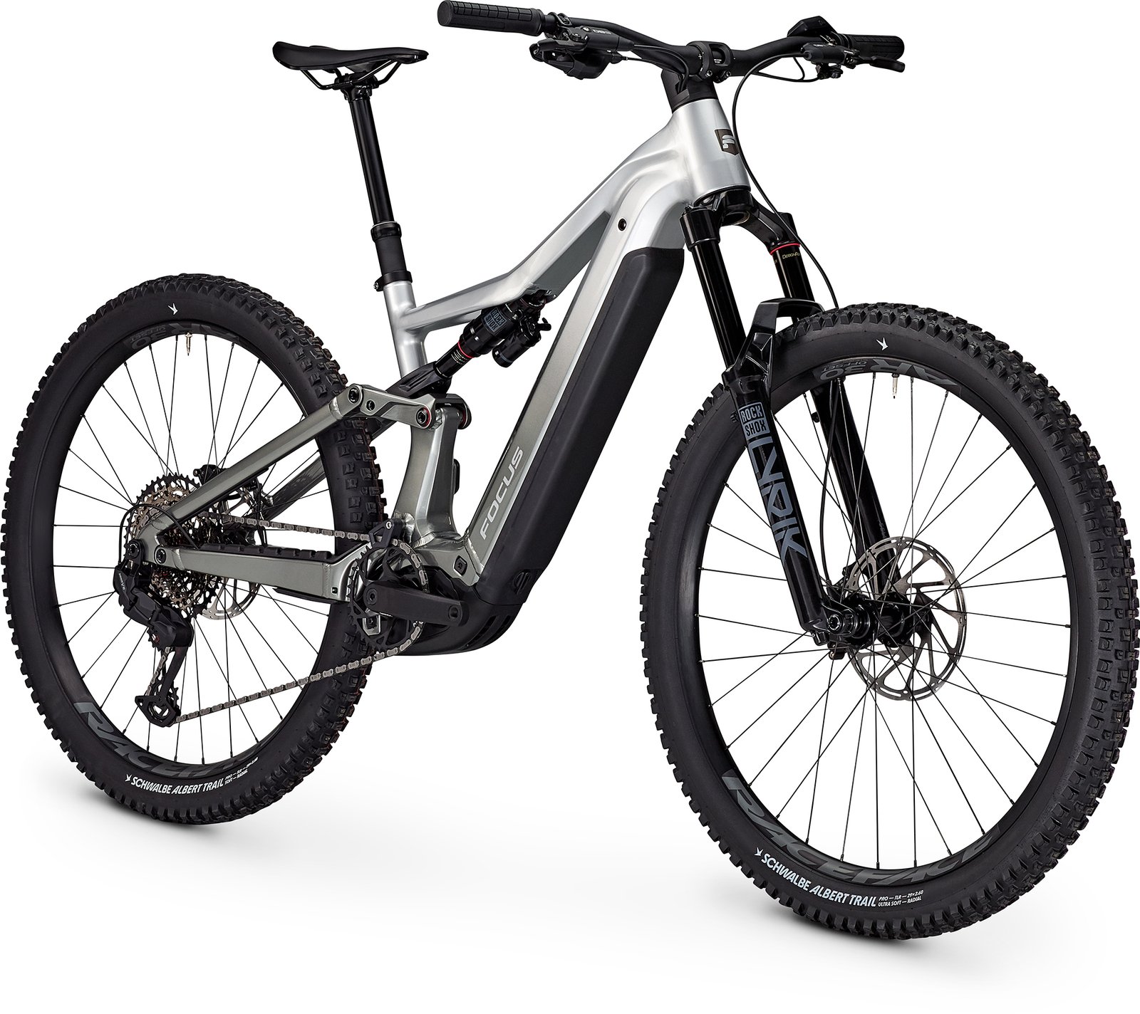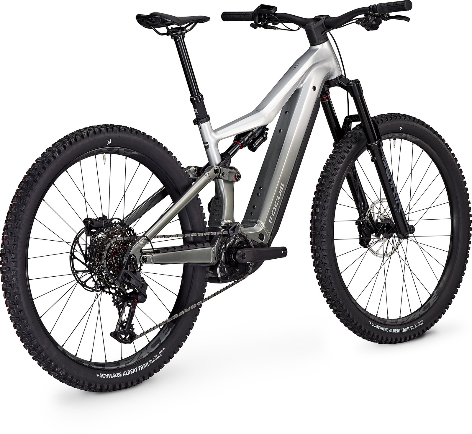 Le groupe SRAM Eagle 70 à 12 vitesses assure des passages de vitesses précis et fiables, tandis que les pneus Schwalbe Albert à carcasse radiale et gomme ultra-tendre garantissent une adhérence maximale. Le poste de pilotage épuré dissimule entièrement les câbles, pour un look propre et une protection optimale.